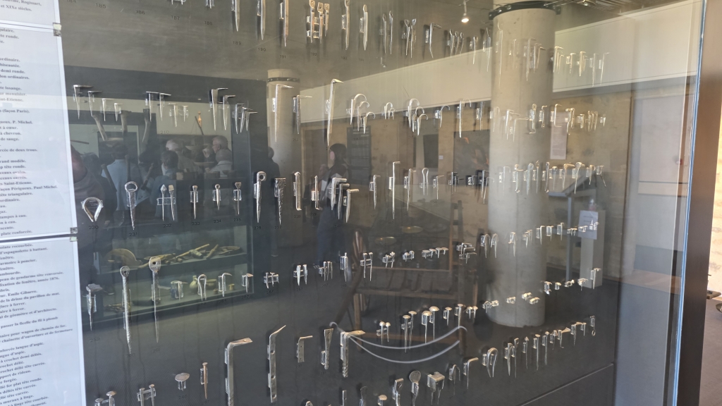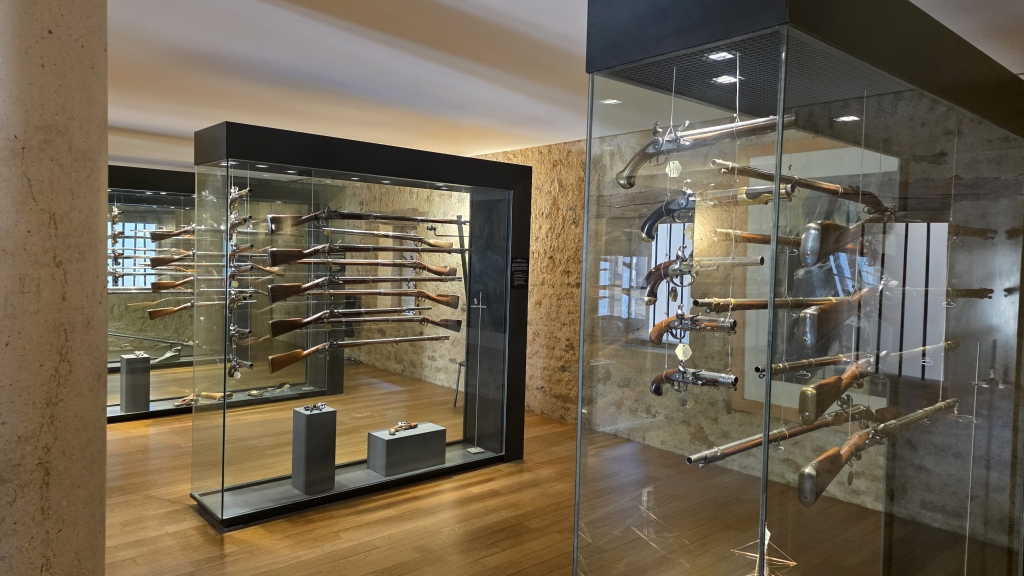 Notre visite du Musée de l'Ardenne commence par une salle qui ne manque pas d'impressionner : la salle des armes. Les armes de la Manufacture royale de Charleville y sont exposées au premier étage, sous de belles vitrines d'acier bleu.