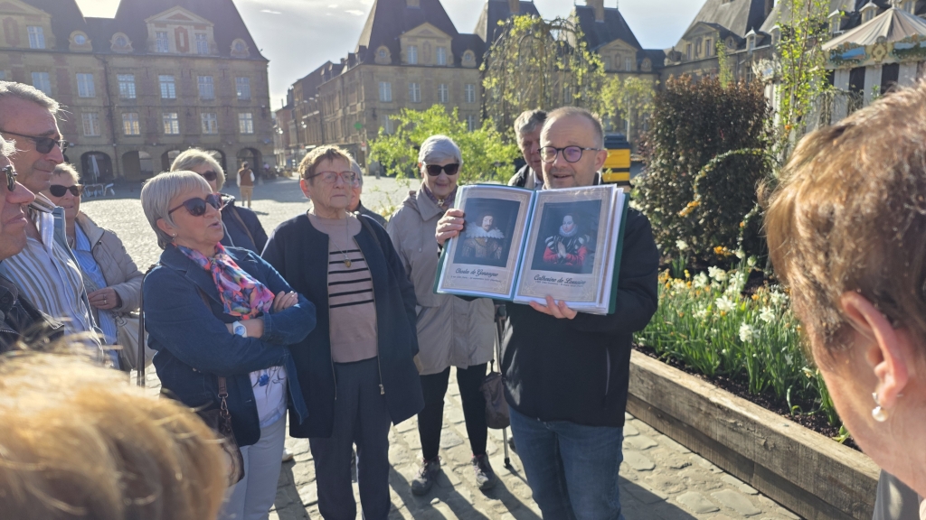 Notre guide nous retrace alors l'histoire fascinante de cette place et de la ville qui lui doit son existence. En 1606, un prince d'origine italienne, Charles de Gonzague, fonde Charleville sur la minuscule principauté d'Arches, rêvant de rivaliser avec les grands souverains de son époque en se dotant d'une véritable capitale. Ce qui aurait pu rester une utopie devint, avec Versailles, l'une des réalisations urbaines les plus importantes du XVIIe siècle sur le territoire de la France actuelle.