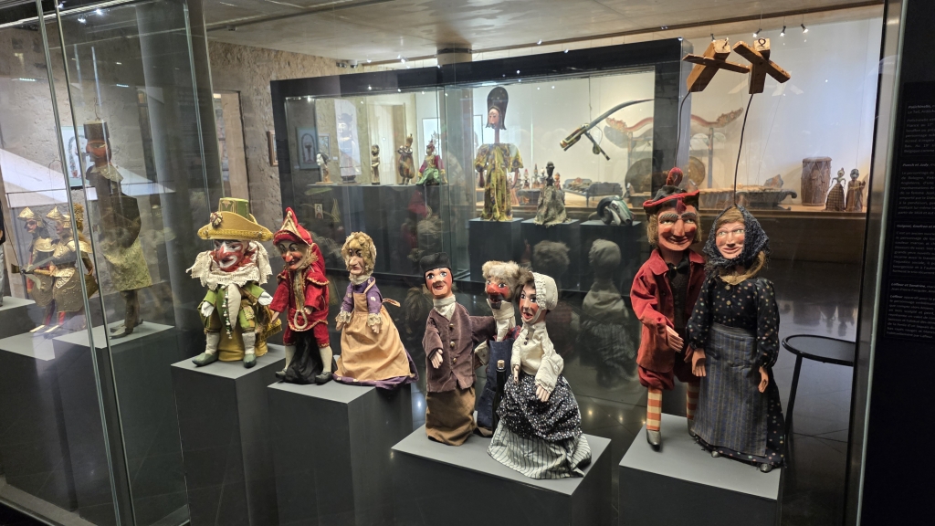 Et pour clore notre visite du Musée de l'Ardenne en beauté, nous pénétrons dans la salle des marionnettes — sans doute la plus spectaculaire de toutes. Les vitrines regorgent de marionnettes venues des quatre coins du monde, témoignant de l'universalité de cet art millénaire. Charleville-Mézières, capitale mondiale de la marionnette, ne pouvait pas faire moins !