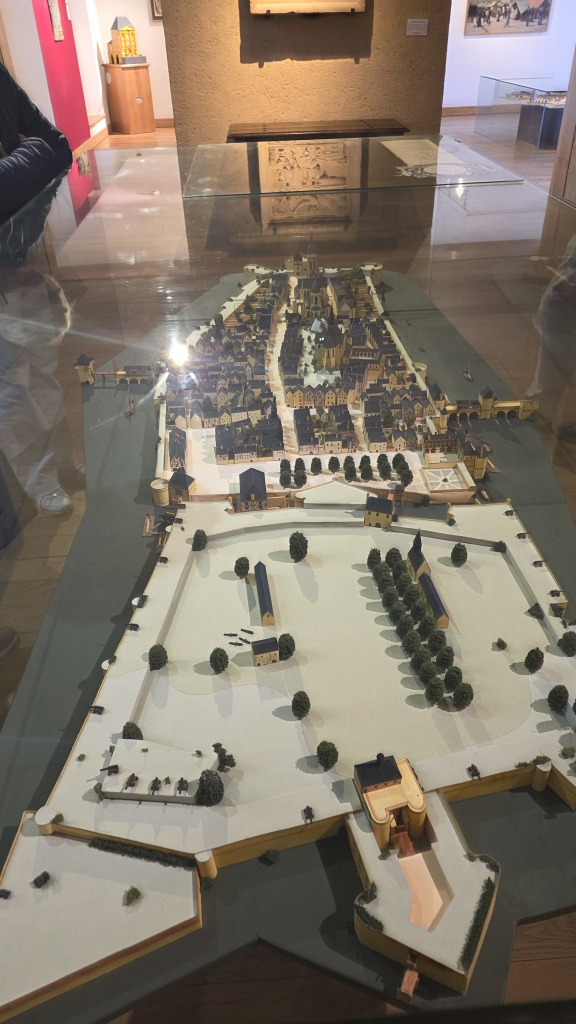 Dans la pièce suivante, une maquette minutieuse nous permet de découvrir l'ancienne ville de Mézières dans toute sa splendeur fortifiée — l'occasion pour notre guide de nous en retracer l'histoire.