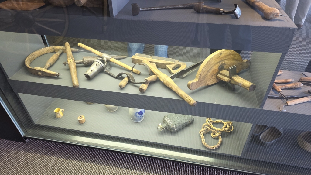 Une autre salle du musée nous plonge dans les racines économiques et industrielles de la région, autour de trois matières premières qui ont forgé l'identité ardennaise : l'ardoise, le bois et le fer.