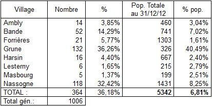 Sur les 1.006 remarques formulées, 364 émanent d’habitants de Nassogne (36,18 %), soit 6, 81 % du total de la population communale (y compris les – de 18 ans).